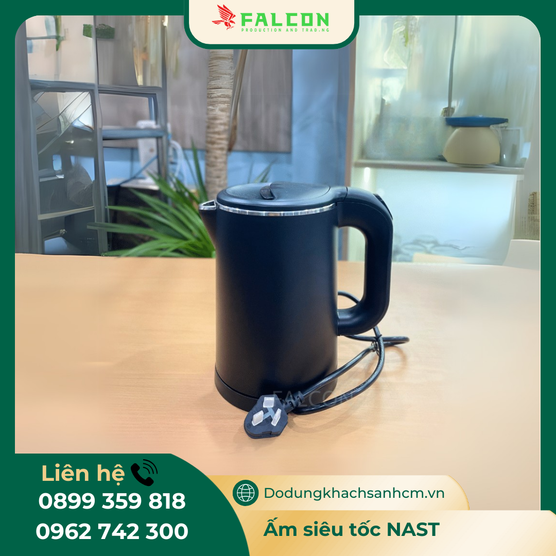 Trong không gian khách sạn, ấm siêu tốc là một thiết bị không thể thiếu, giúp khách lưu trú nhanh chóng có nước nóng để pha trà, cà phê hoặc sử dụng theo nhu cầu. Với thiết kế nhỏ gọn, chất liệu an toàn và công suất mạnh mẽ, ấm siêu tốc NAST là lựa chọn lý tưởng cho các khách sạn, nhà nghỉ và resort. Vậy sản phẩm này có gì đặc biệt? Hãy cùng Falcon khám phá sản phẩm và những ưu điểm đặc biệt qua bài viết dưới đây!