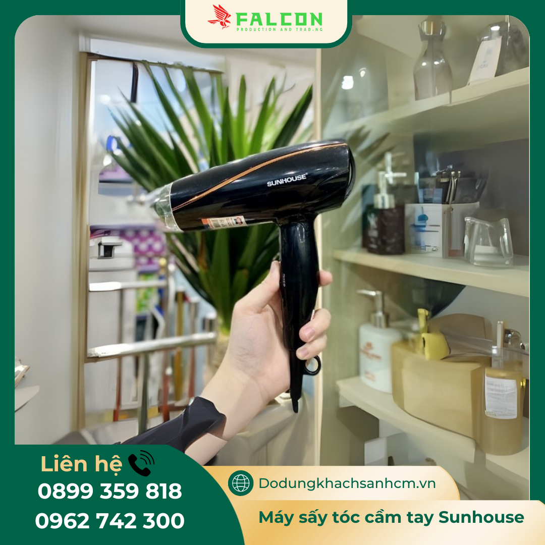Máy sấy tóc là thiết bị không thể thiếu trong phòng khách sạn, giúp khách hàng có trải nghiệm thoải mái hơn trong quá trình lưu trú. Máy sấy tóc cầm tay Sunhouse nổi bật với thiết kế hiện đại, công suất phù hợp, đảm bảo an toàn cho người sử dụng và độ bền cao, trở thành lựa chọn lý tưởng cho các khách sạn, resort. Hãy cùng Falcon khám phá sản phẩm và những ưu điểm đặc biệt qua bài viết dưới đây!