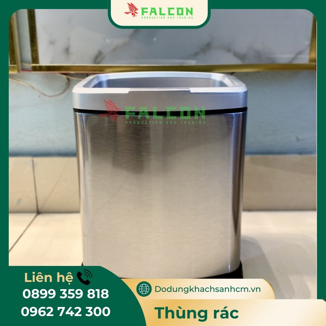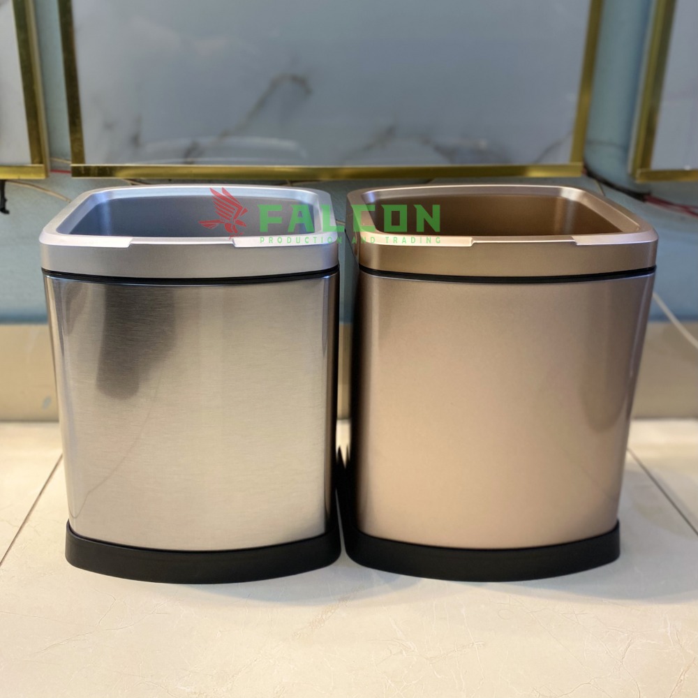 – Chất liệu: Inox 410 phủ nano, chống gỉ sét – chống vân tay, lõi thùng rác nhựa PP